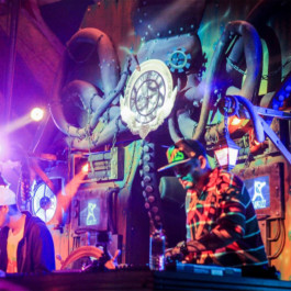 Stage design & building decors for a music festival inspired by steampunk universe & retro style from 1920.